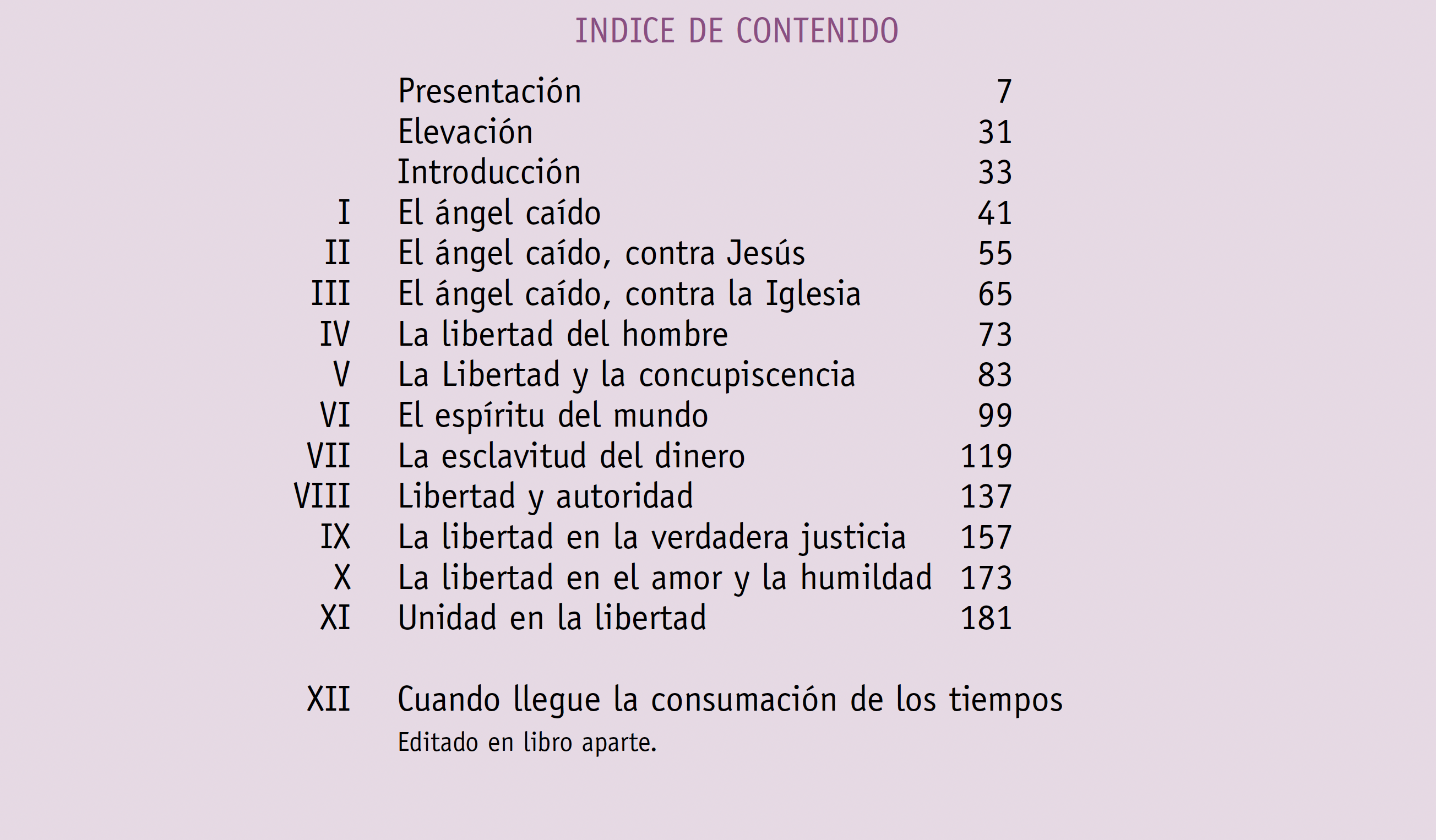 “¿Somos verdaderamente libres? ¿En qué sentido? Todo aquel que hace lo que quiere, ¿es verdaderamente libre? Hay que contestar que existe una falsa libertad, que encubre una esclavitud íntima; es el hombre voluntarioso que tiene poder y facultad para obrar a su capricho. Ese es un esclavo de sí mismo, esclavo del espíritu que le orienta a su egoísta. Pues el verdadero “yo” del alma tiende siempre a Dios solo, ya que fue creada a su “imagen y semejanza” y por lo mismo debe identificarse con El. Cualquier otra meta, fuera de esa unión con Dios, que el hombre se proponga alcanzar, se debe a un mal uso de la libertad, originando en él la esclavitud mencionada.” (Pag. 73)